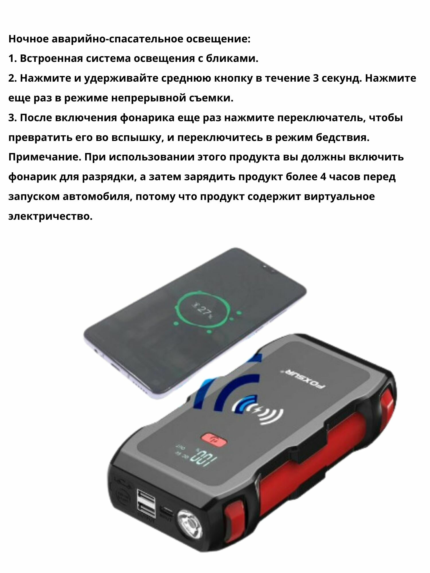 Пуско-зарядное устройство для автомобиля Foxsur информация: