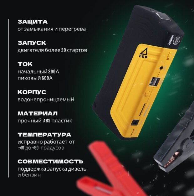 "Бустер для авто" - пуско-зарядное устройство с аккумулятором на 50 800 мАч информация:
