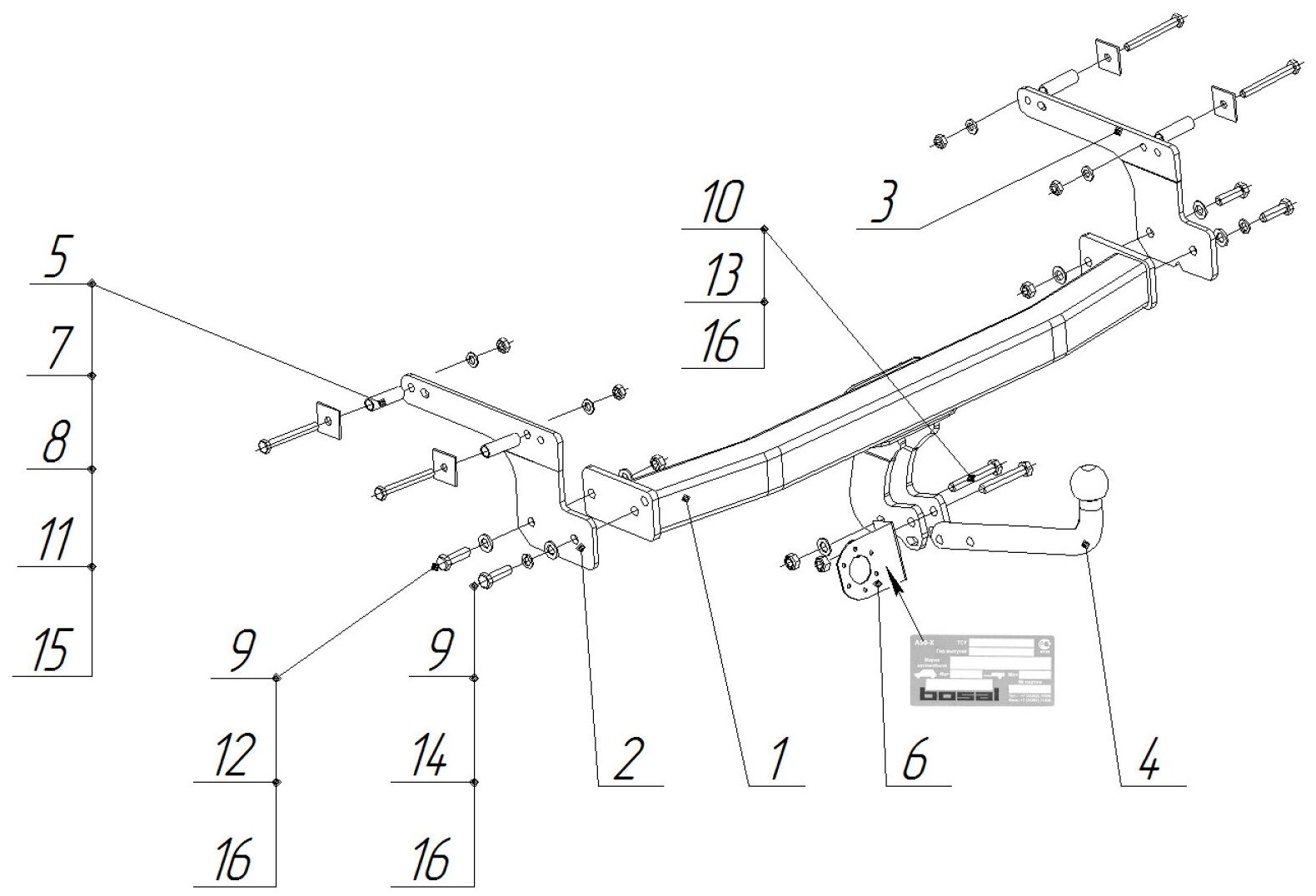 Фаркоп Baltex для Ленд Ровер Рендж Ровер Спорт 2005-2013, модель №1, арт:043338-1