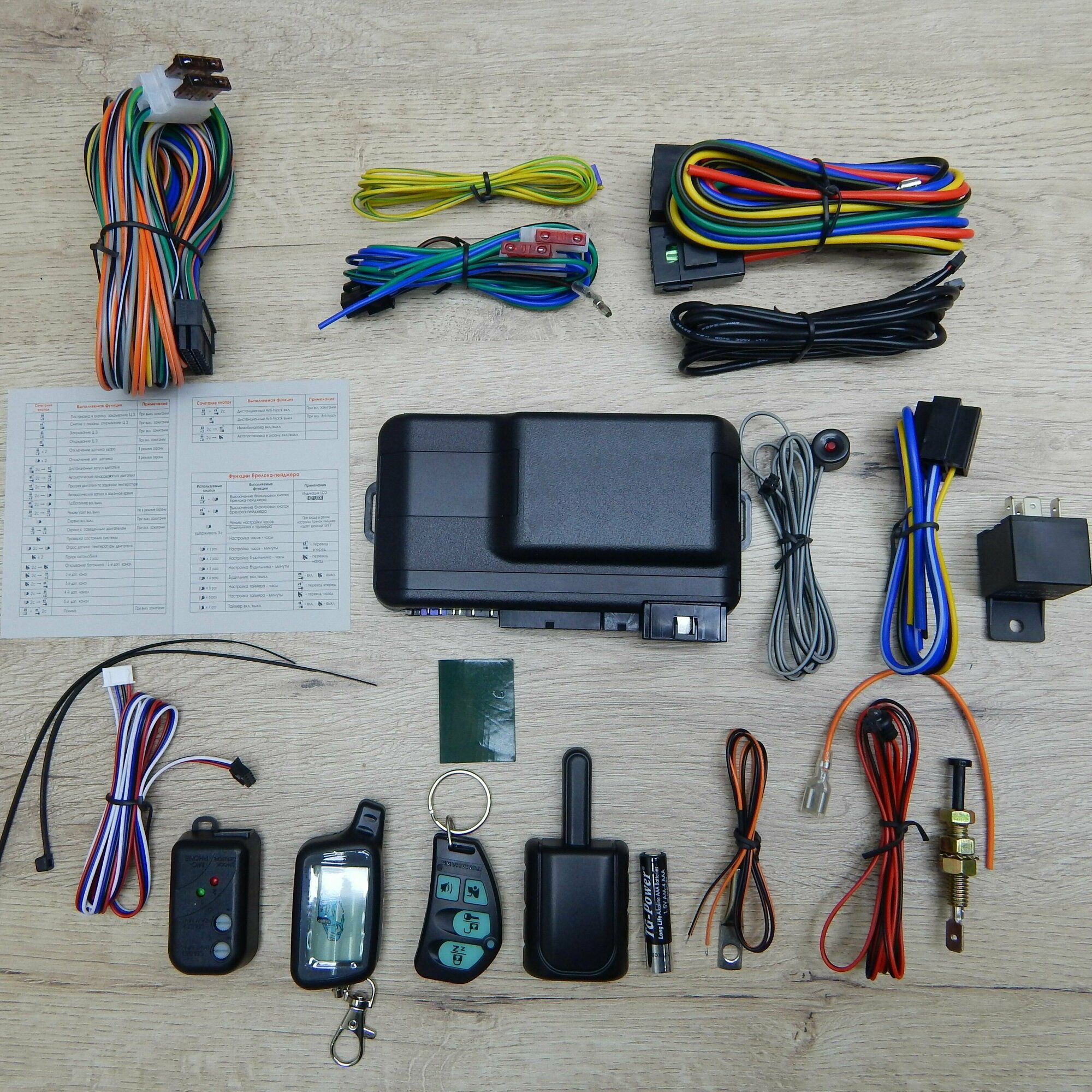 | Подробная комплектация | Упаковочная коробка , элемент питания AAA , руководство пользователя и инструкция по установке , памятка пользователя , провода для подключения основного модуля, центрального замка, датчика удара, антенны, реле блокировки , концевой выключатель кнопочного типа , основной модуль , брелок-пейджер с LCD-дисплеем , брелок стандартного типа, влагозащищенный (дополнительный) , двухуровневый датчик удара , приемопередающая антенна , кнопка "OVERRIDE", реле блокировки двигателя |