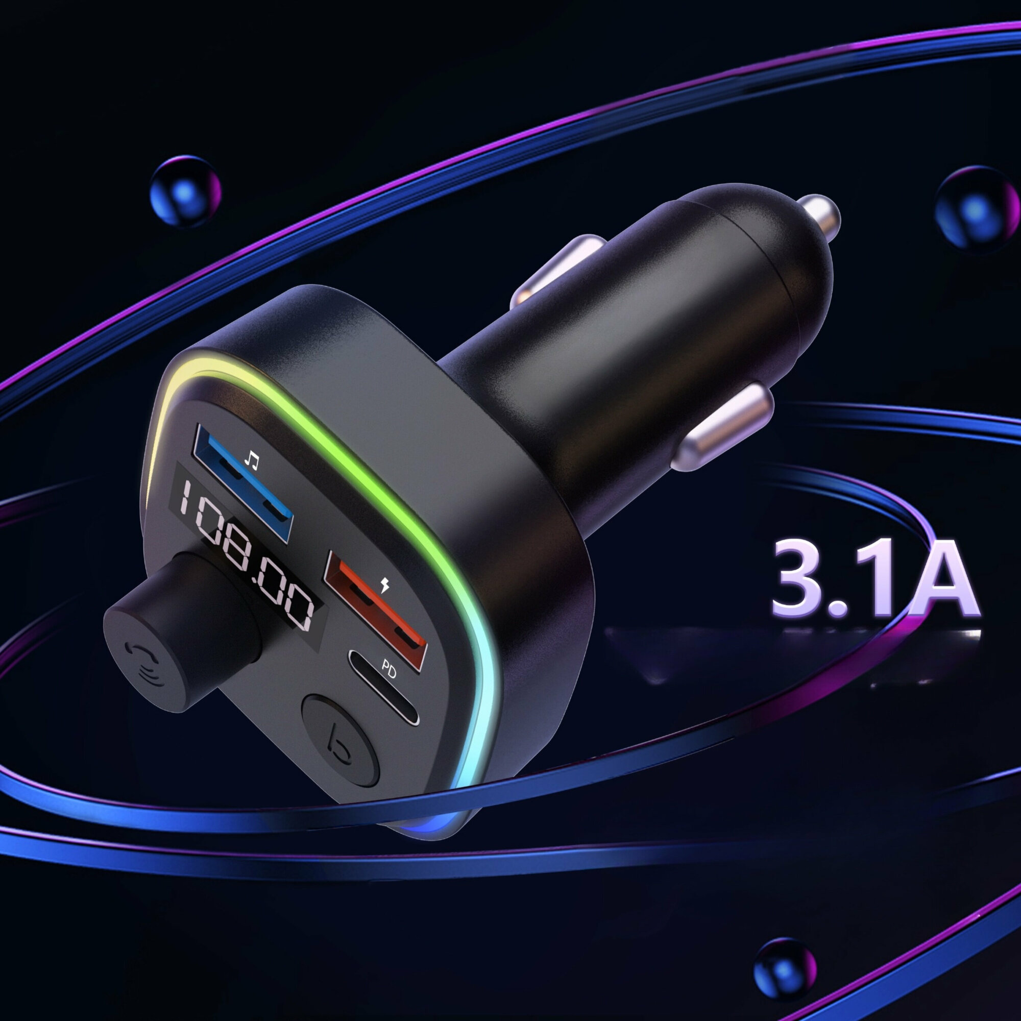 FM-трансмиттер, автомобильный фм модулятор, bluetooth, быстрая зарядка Type-C PD18W, 2 USB входа 3.1A, RGB подствека, громкая связь информация: