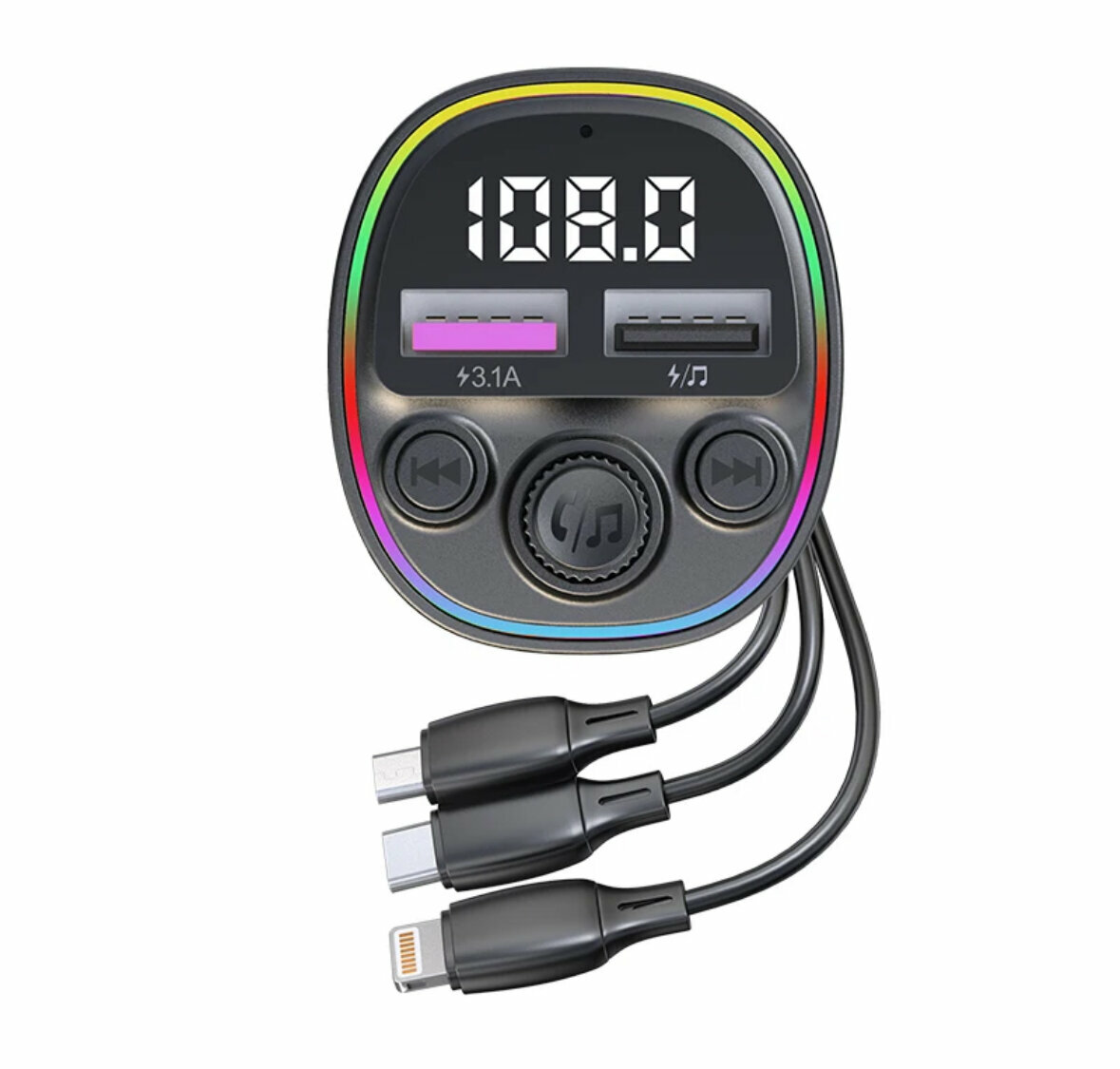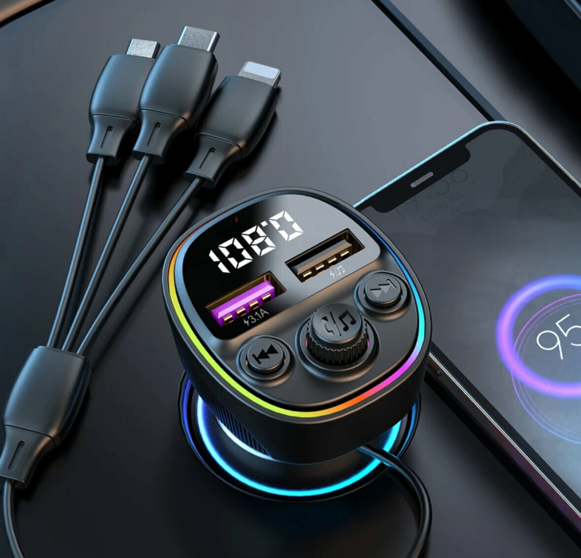 10 цен на FM-трансмиттер Rapture KSC-1067 Bluetooth, Громкая связь, 100W, Кабель Micro-Lightning-Type-C