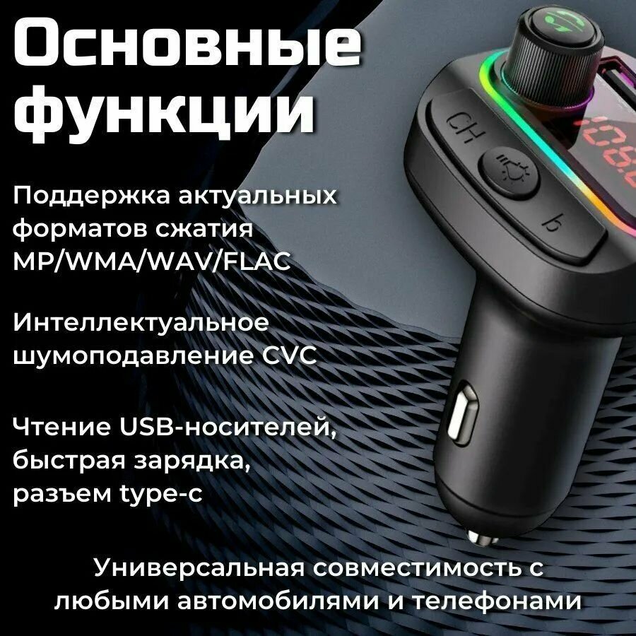 Орбита / TS-CAF120 FM-трансмиттер с bluetooth/микрофоном/ для автомобиля/ зарядник QC 3.0 для авто в прикуриватель