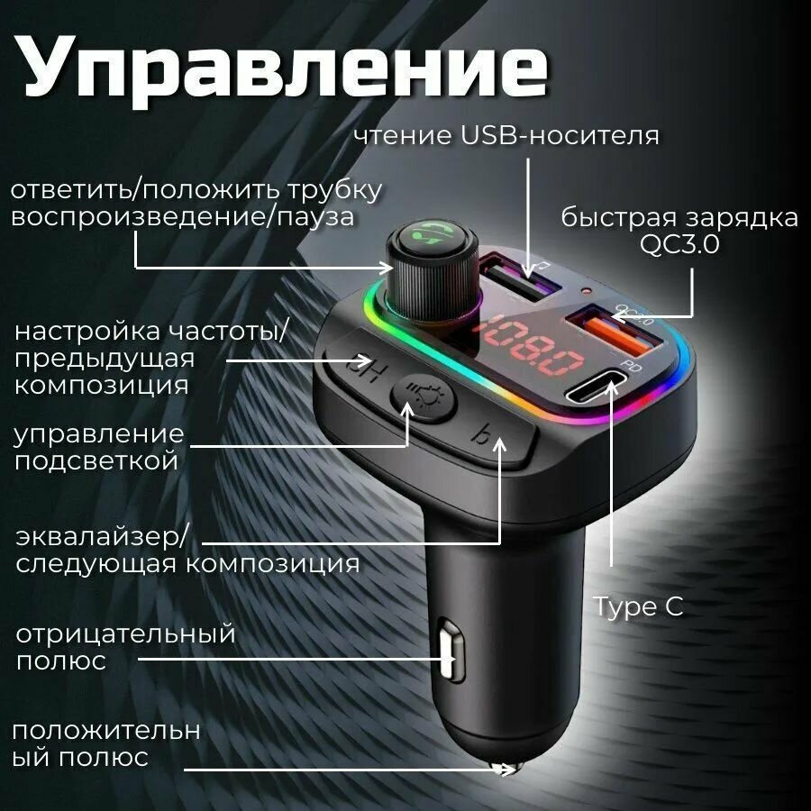 MP3 FM Bluetooth 5,0 Модулятор PD 20 Вт QC 3,0