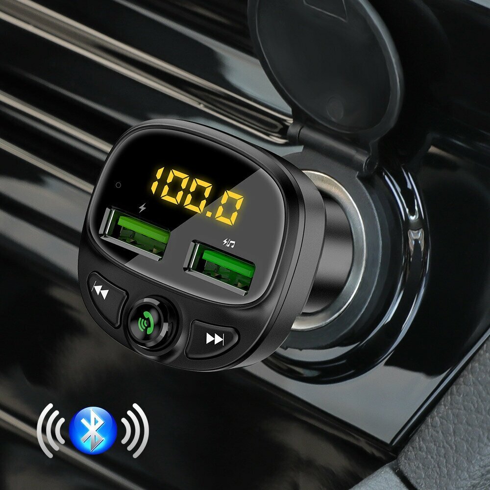 Автомобильный FM-передатчик Bluetooth 5,0 с двумя USB-портами и поддержкой быстрой зарядки, With Remote Control