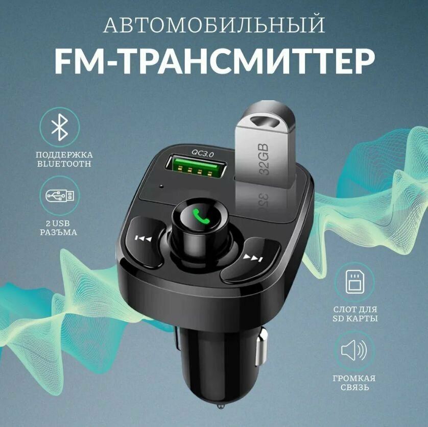 Орбита / TS-CAF120 FM-трансмиттер с bluetooth/микрофоном/ для автомобиля/ зарядник QC 3.0 для авто в прикуриватель