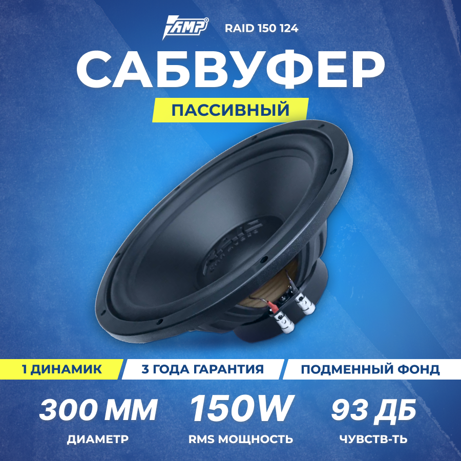 Сабвуферный динамик AMP RAID 150 124(4 Ом, rms150) информация: