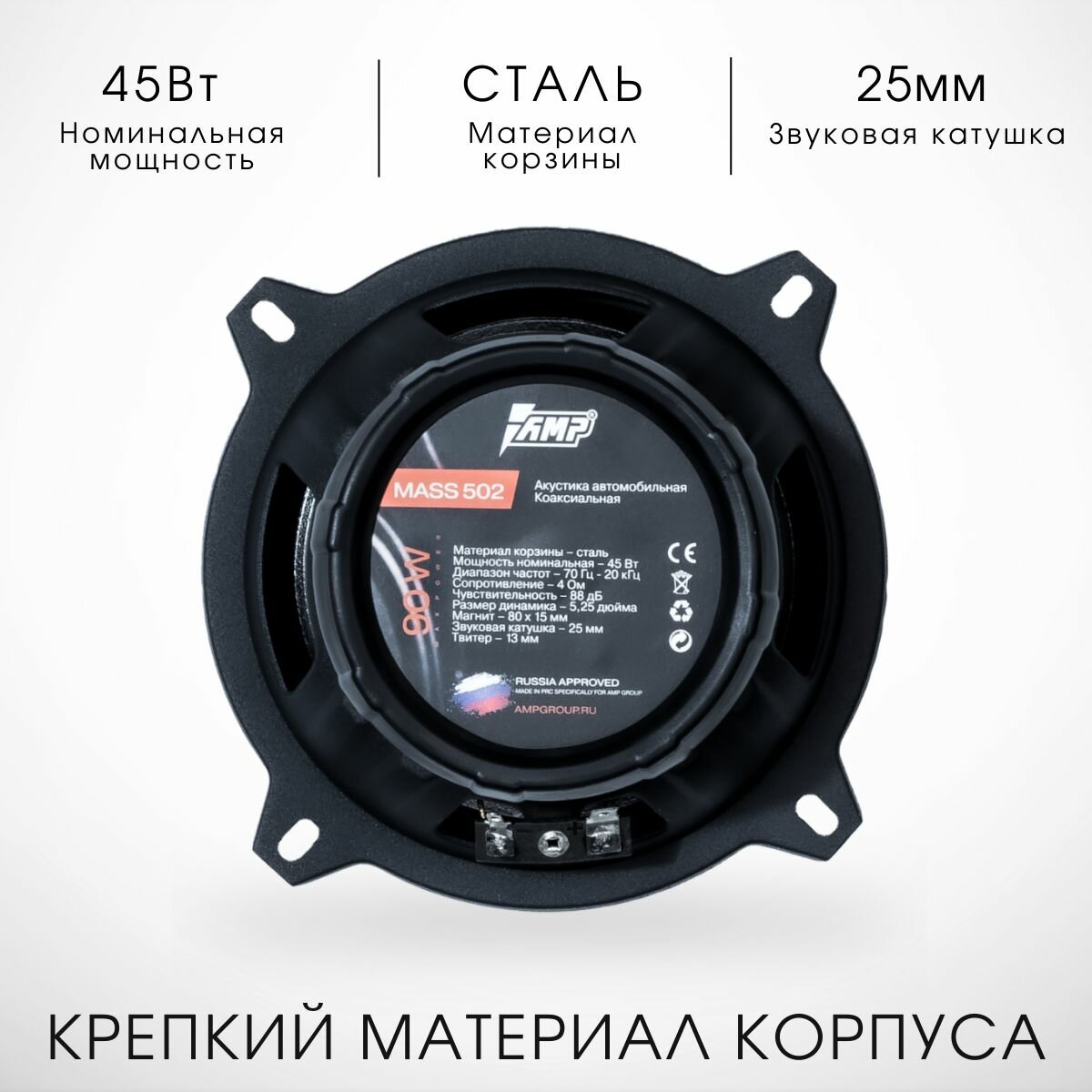 10 цен на Акустика автомобильная 13 см AMP MASS 502 (двухполосная) 2шт