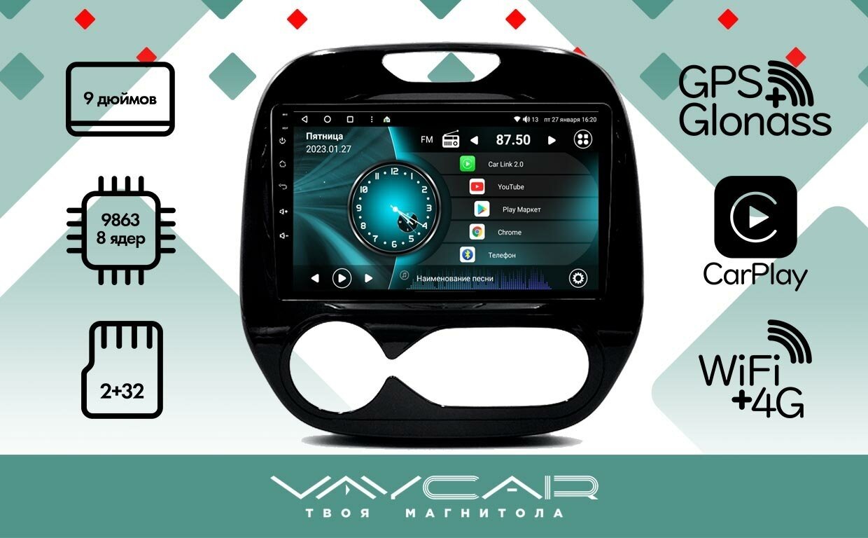 Магнитола Vaycar 09V2 для RENAULT Kaptur 2016+ (Андроид, 2+32, 8 ядер, WiFi, BT, 4G, GPS, QLED 9") информация:
