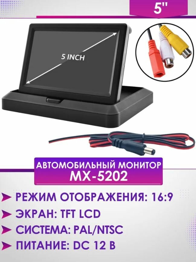 Автомобильный раскладной монитор MX-5202 5.0" + 3rca информация: