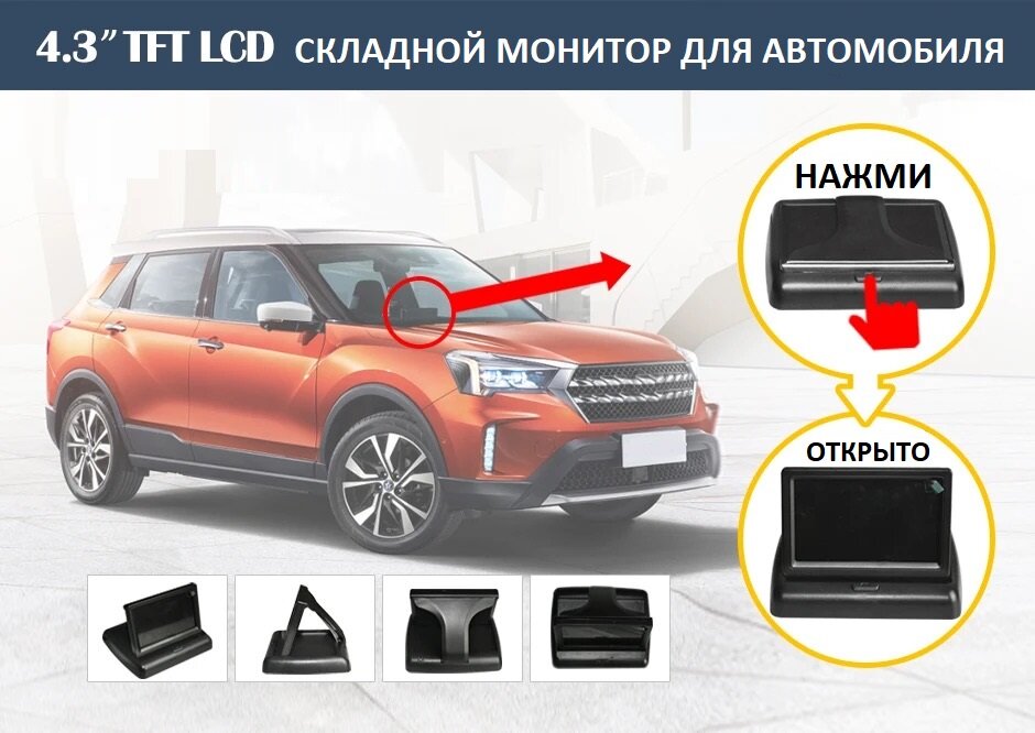 Монитор для камеры заднего вида, складной TFT LCD 4,3" информация:
