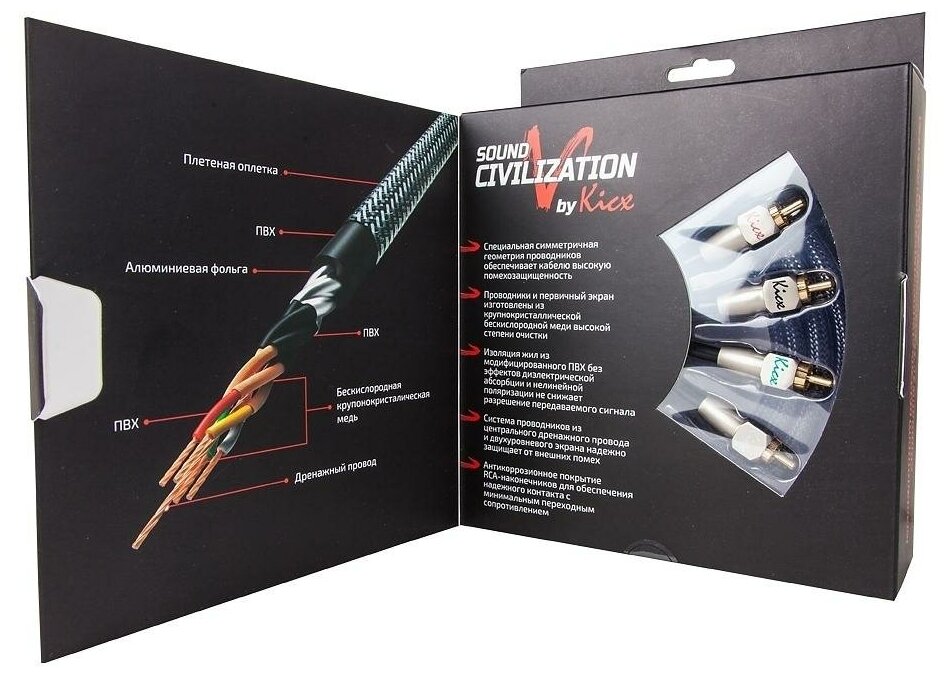 Межблочный кабель Kicx DRCA25 (2RCA - 2RCA) бескислородная медь 5 метров