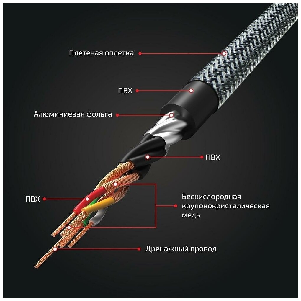 Акустический кабель KICX "Terza", 6 м, сечение жилы 2×2,5мм², бескислородная медь