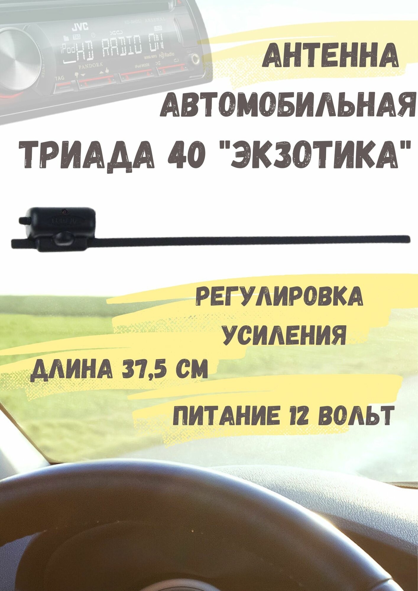Активная автомобильная радиоантенна "Триада 002 Mini" всеволновая с регулировкой усиления