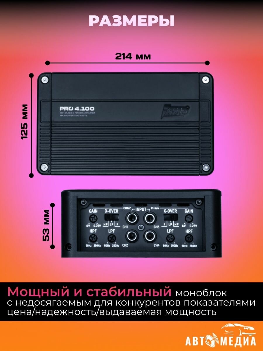 Автомобильный усилитель звука AMP PRO 4.100 четырехканальный информация:
