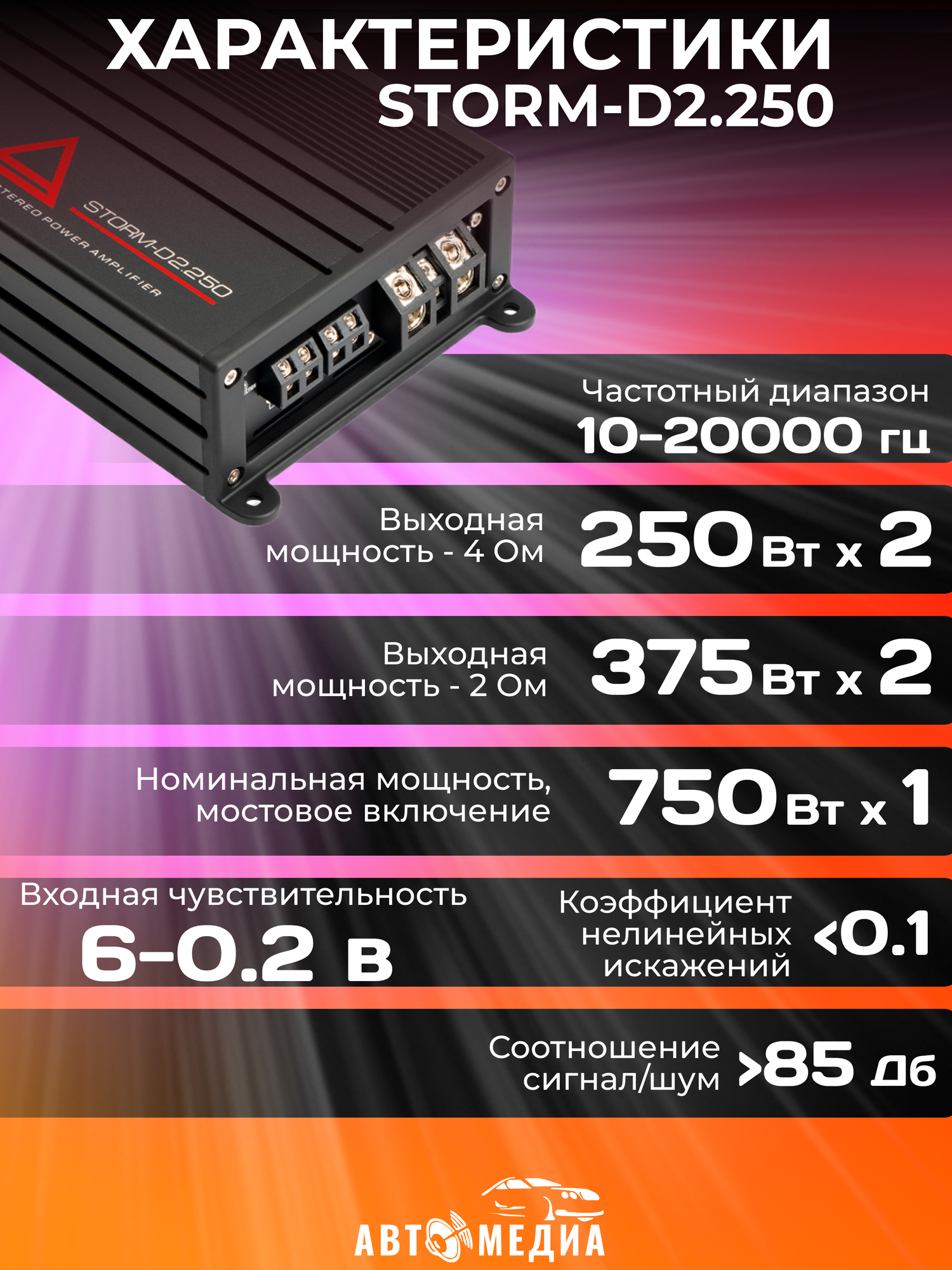 2-канальный усилитель мощности Aura STORM-D2.250 информация: