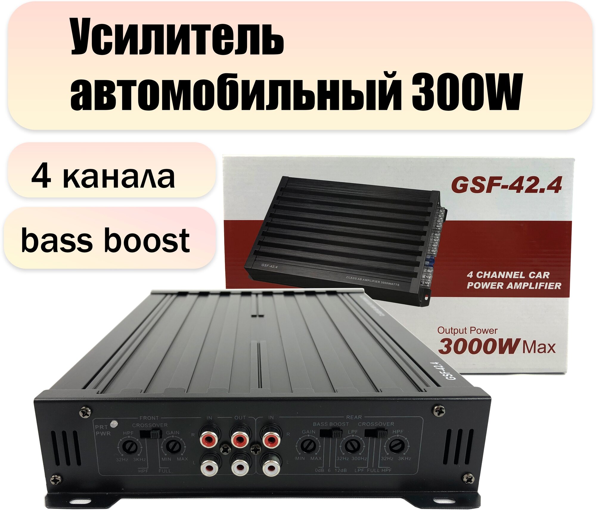Усилитель автомобильный 4 канальный GNN-42 300W bass boost информация:
