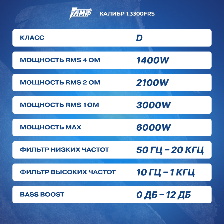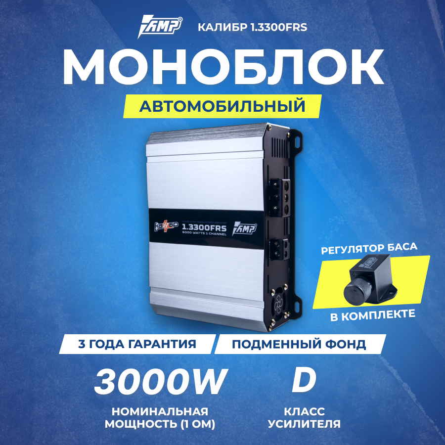 Усилитель автомобильный одноканальный для сабвуфера AMP Калибр 1.3300FRS информация: