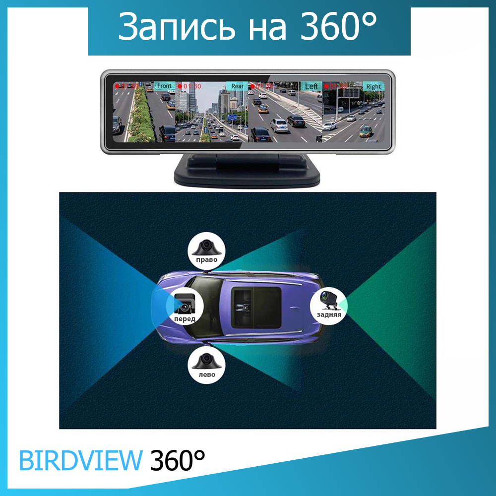 Видеорегистратор зеркало с 3-мя камерами для автомобиля
