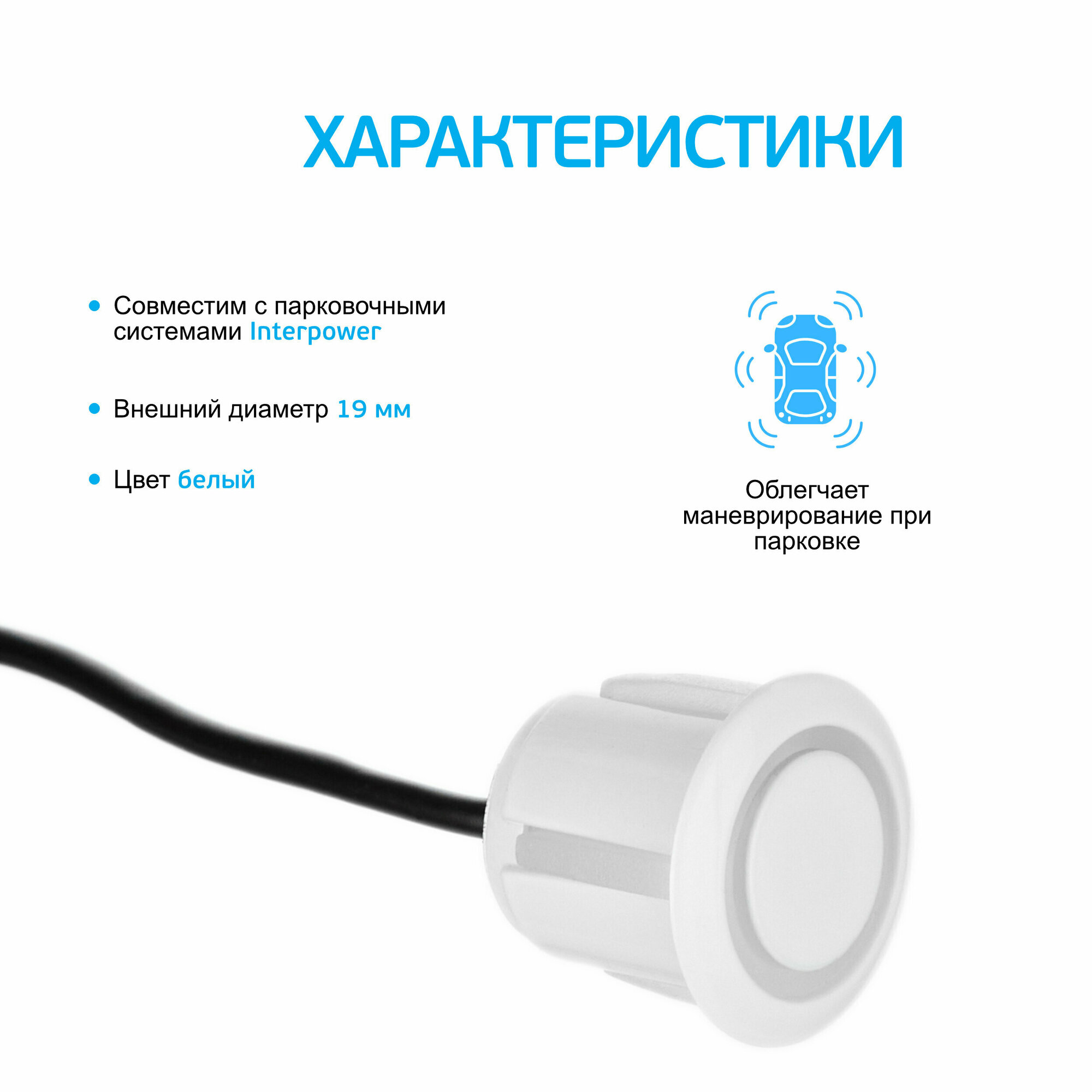 Белый дополнительный датчик для парктроников Interpower 19мм информация: