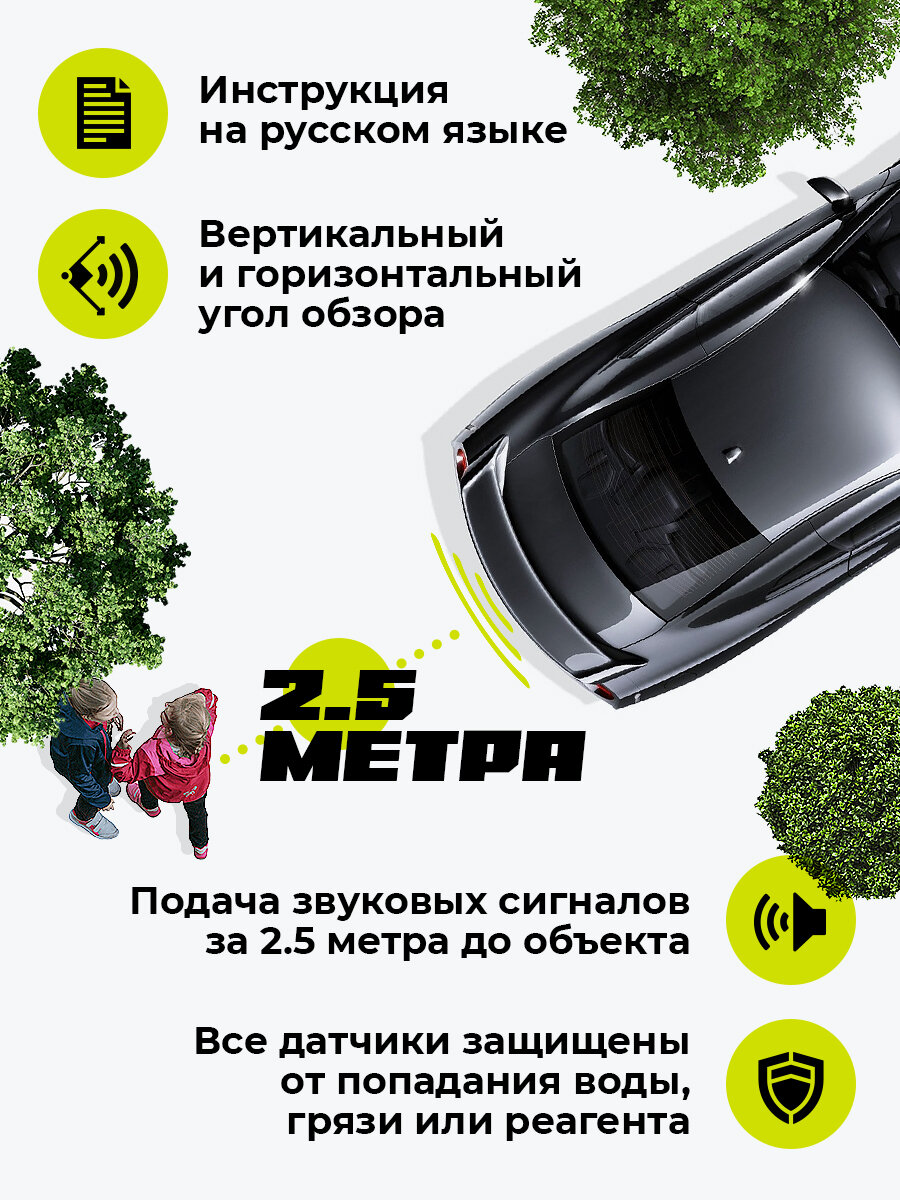 | Особенности | активация задней передачей / встроенный динамик / изменение минимального расстояния реагирования на препятствия / парковочные линии |