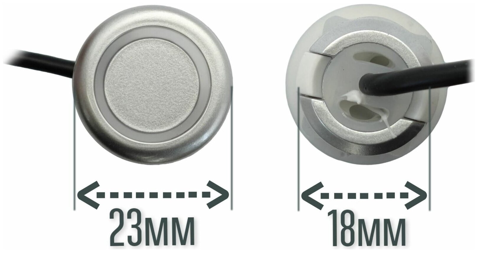 Комплект 4 универсальных датчиков 18 мм парктроника (Разъемный, металл, серебро)