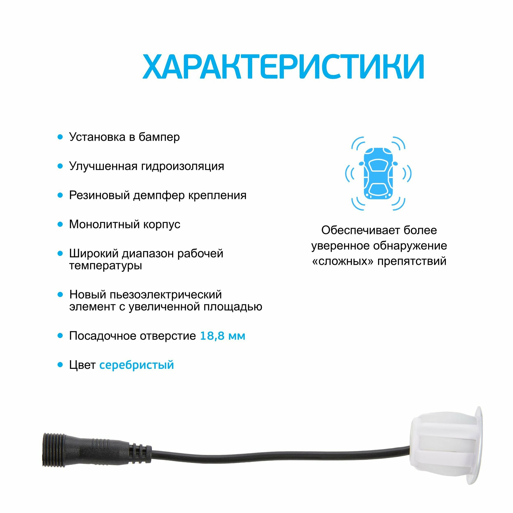 Датчик парктроника ParkMaster FJ silver (18,8 мм) с разъемом информация: