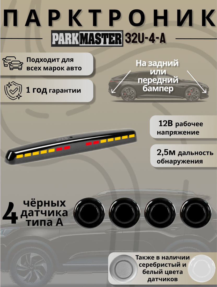 Парктроники на автомобиль, 4 датчика, черный, 32U-4-A-b информация: