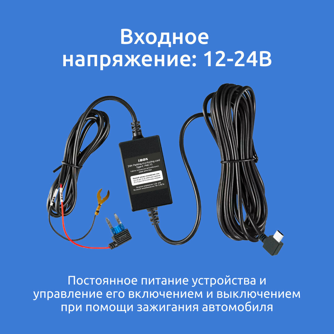 10 цен на Кабель питания для скрытого подключения iBOX 24H Parking monitoring cord Type-C PMC75 для Sonar LaserScan Signature