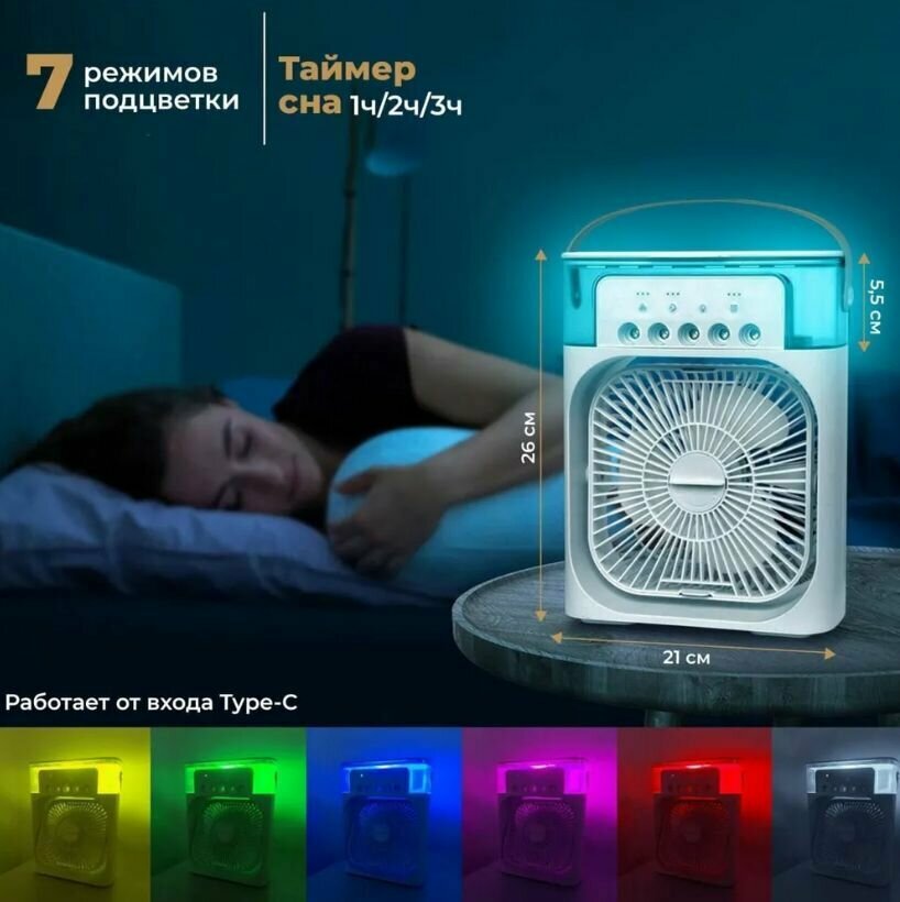 Отзывы на Мини-кондиционер, Портативный вентилятор с водяным охлаждением и ночной подсветкой