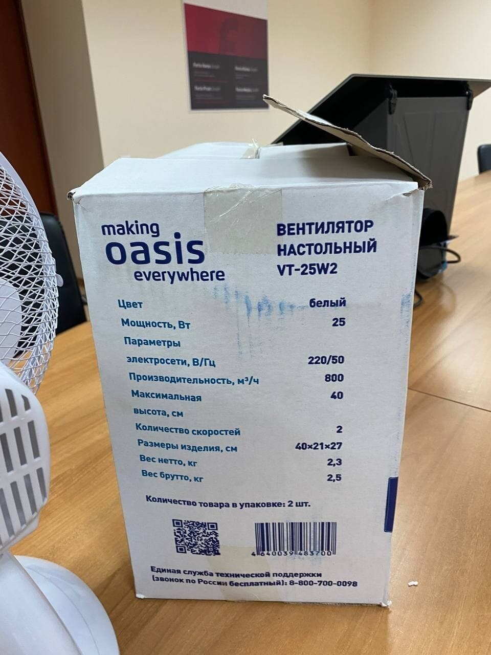 Отзывы на Вентилятор настольный Oasis Everywhere VT-25W2, 2 скорости, регулировка