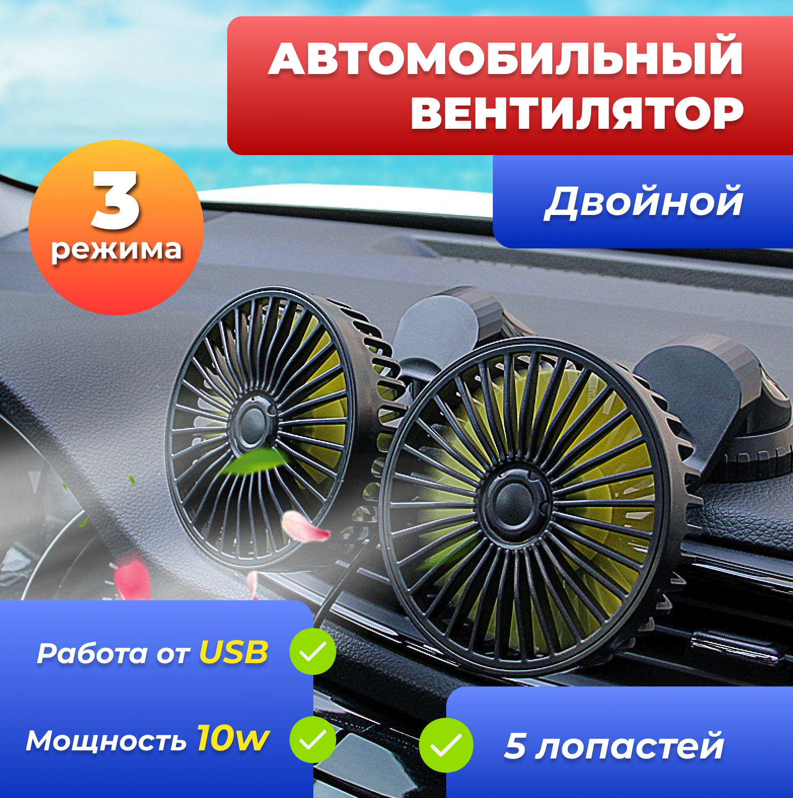 Автомобильный USB-вентилятор, двойной, 3 режима работы, 10w информация: