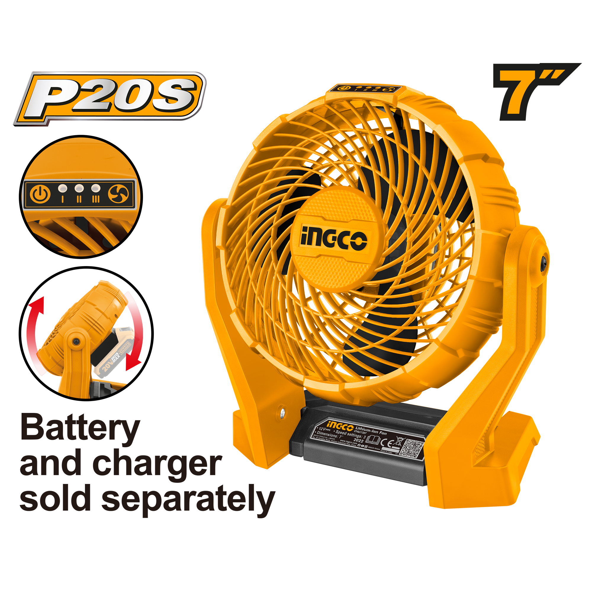 Вентилятор аккумуляторный INGCO CFALI2007 20 В информация: