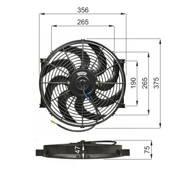 Электровентилятор радиатора Ø356 80 W (14″, загнутые лопасти) #18063 информация: