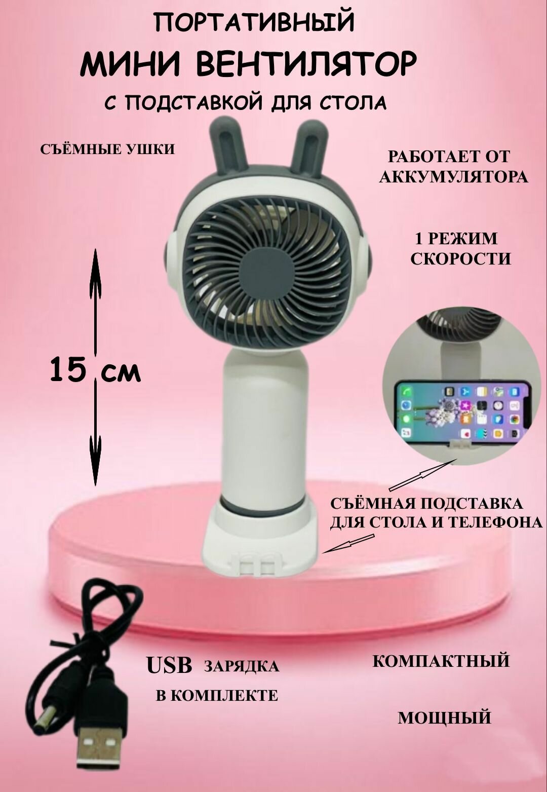 Портативный вентилятор с подставкой белый зайка, вентилятор с USB, вентилятор осевой, ручной вентилятор информация:
