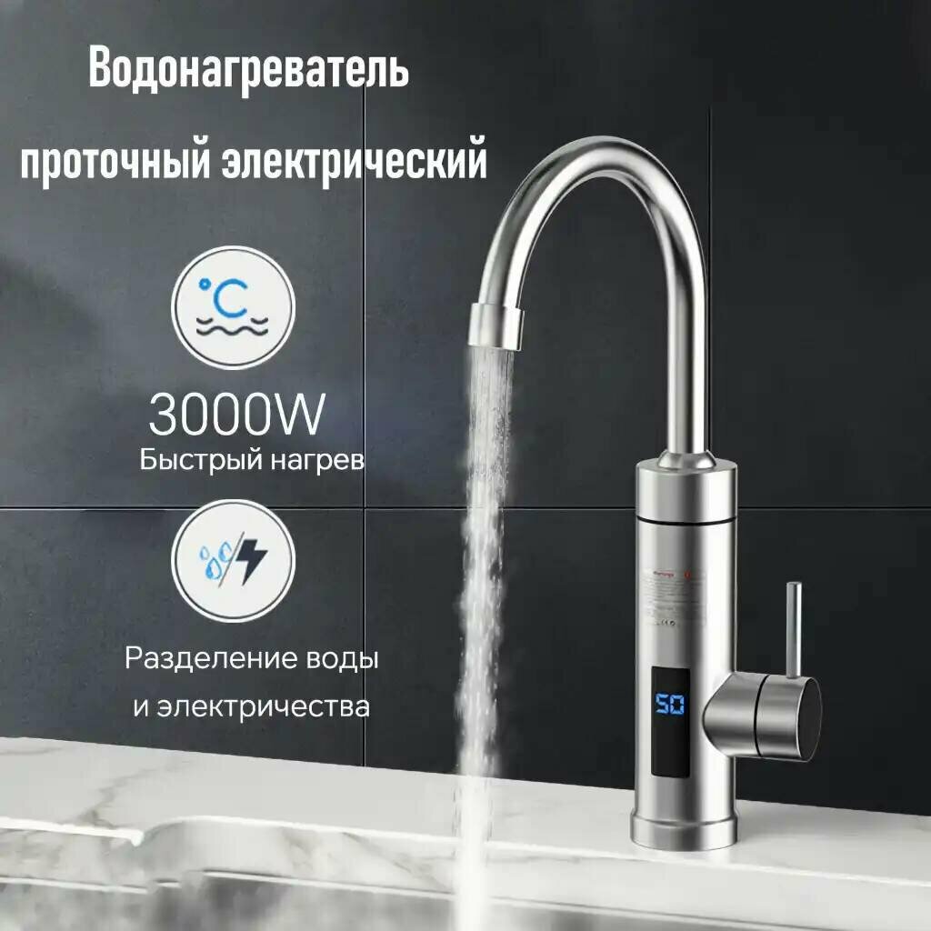 Водонагреватель проточный 3000Вт для установки на раковину / Аксессуары для кухни и ванной / Обогреватель воды для дома и дачи
