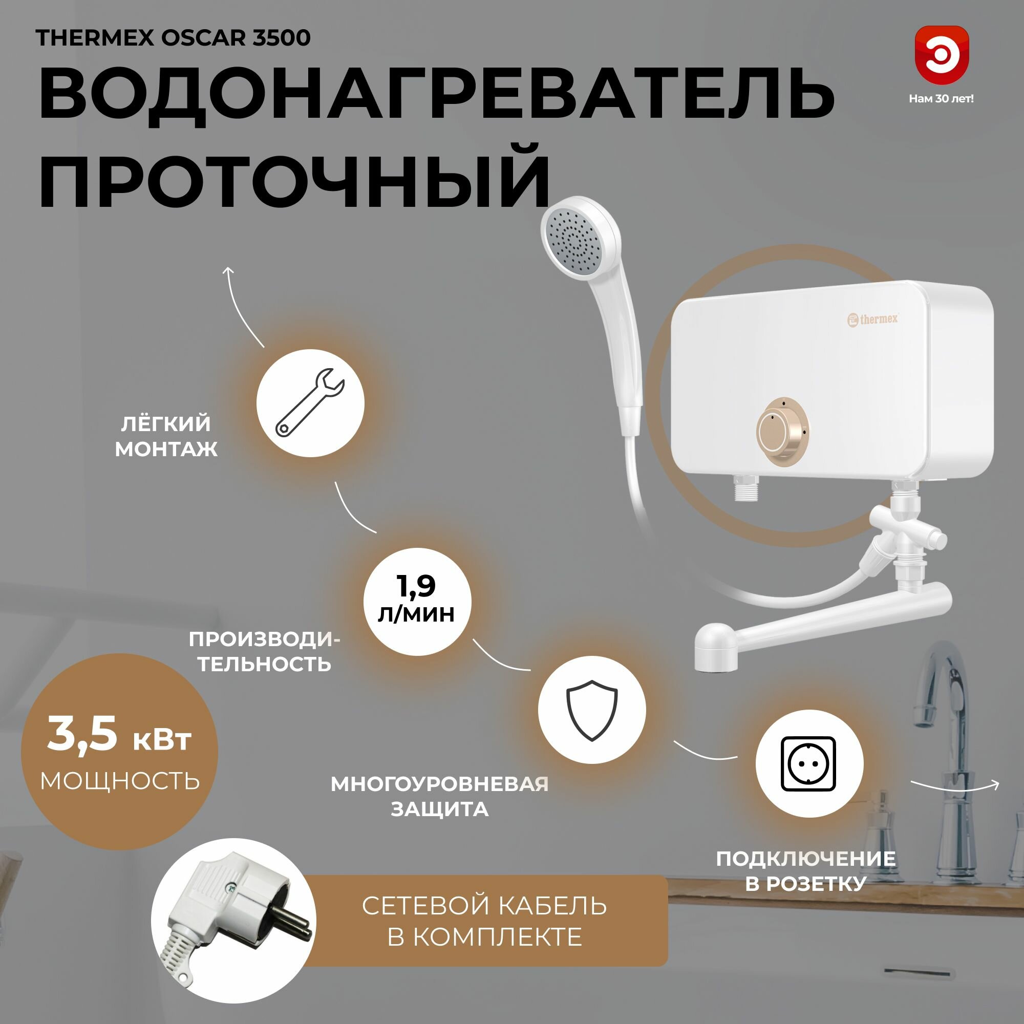 Водонагреватель проточный THERMEX Oscar 3500 информация: