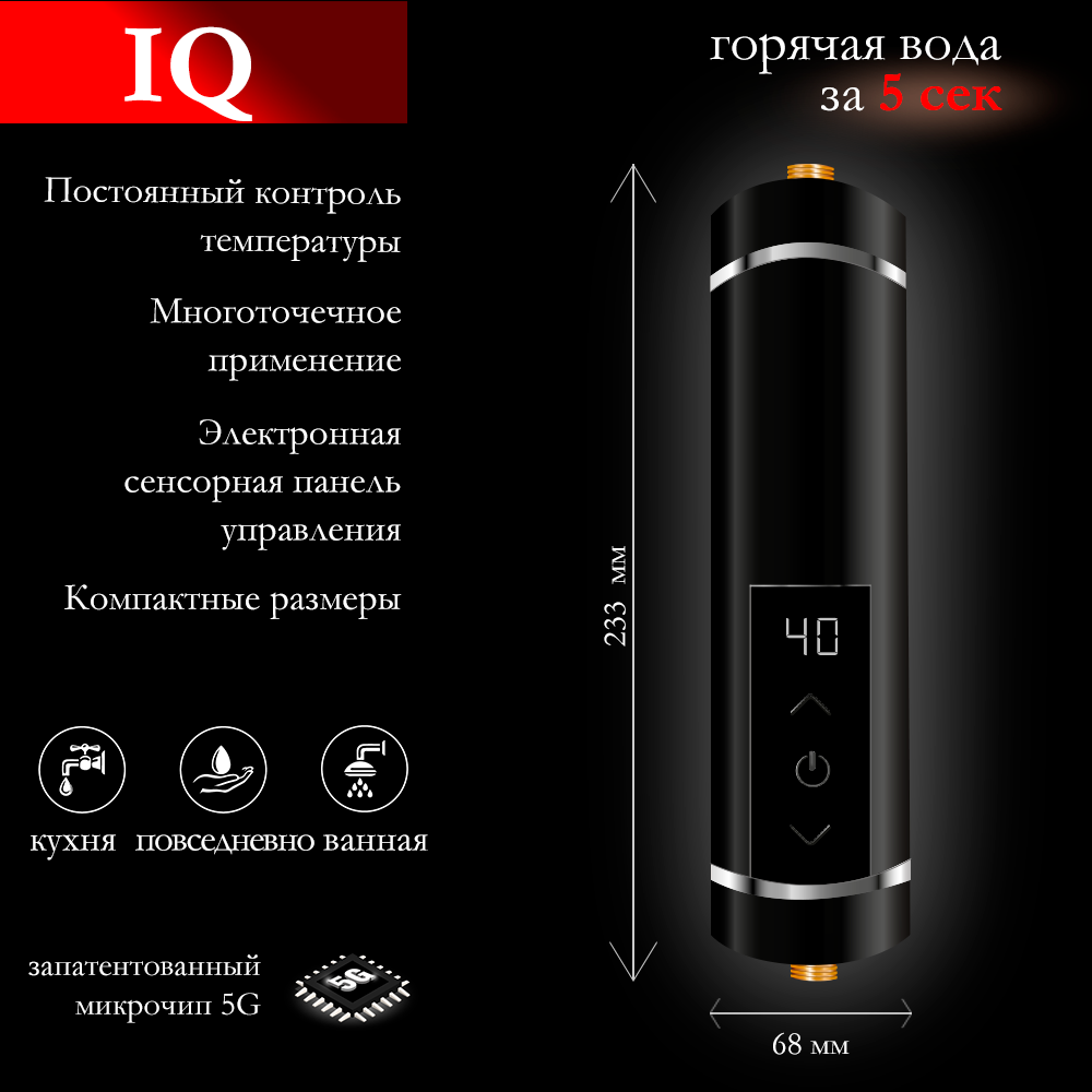 Электрический проточный нагреватель PRIMOCLIMA IQ 5.5 кВт, черный информация: