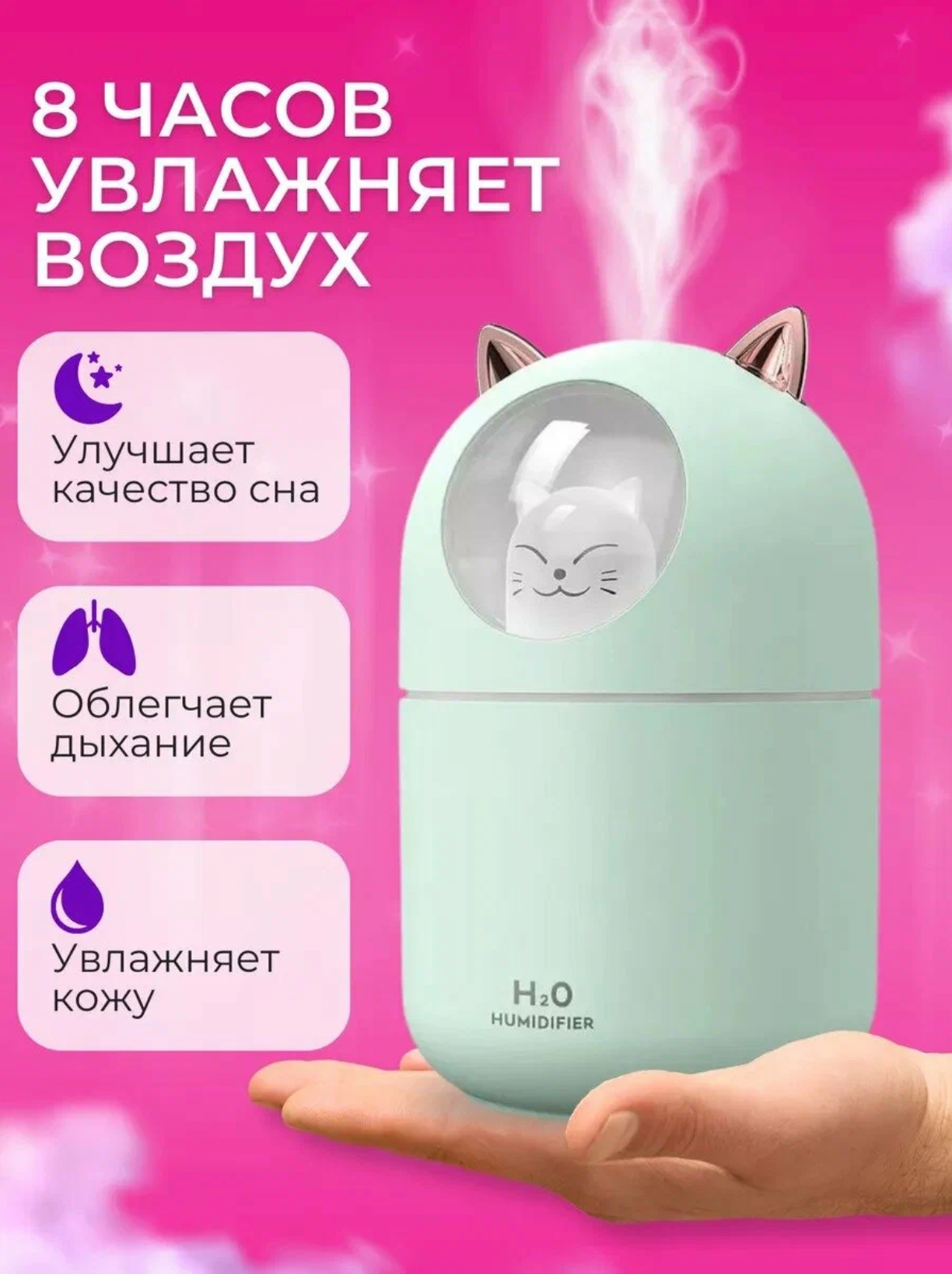 Отзывы на Увлажнитель воздухамини котик, портативный увлажнитель с LED подсветкой, Аромадиффузор, зеленый