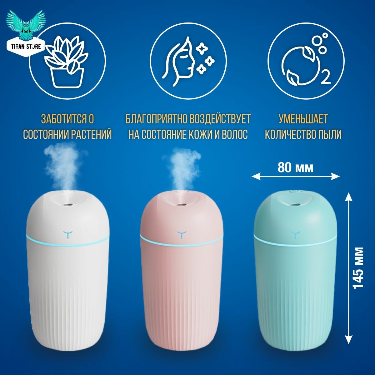 Увлажнитель воздуха для дома мини с подсветкой настольный