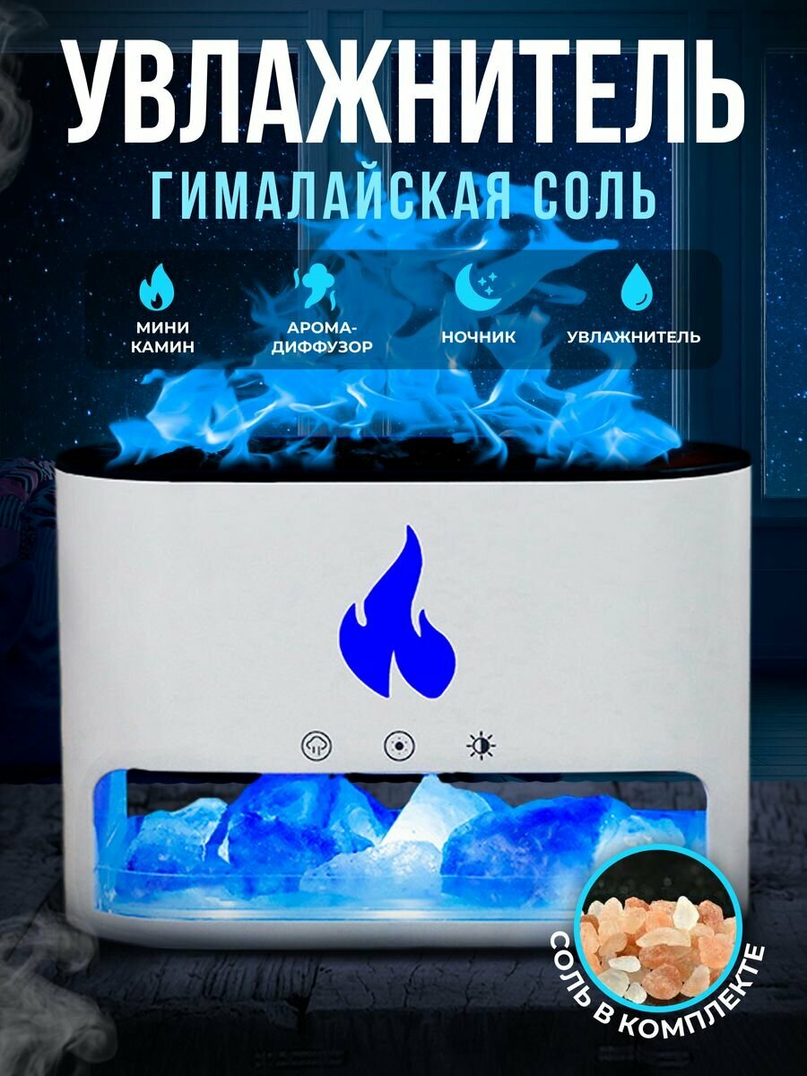 Ультразвуковой увлажнитель Bootleg аромадиффузор с гималайской солью с подсветкой и эффектом пламени белый информация: