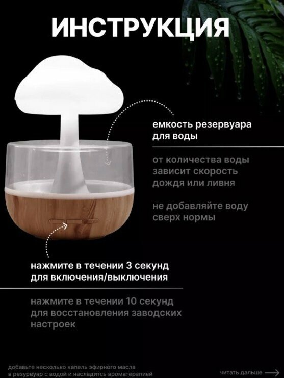 Многофункциональный увлажнитель воздуха Гриб с эффектом дождя для создания идеального климата/Белый информация: