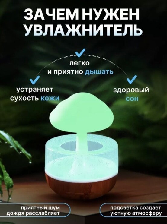 Отзывы на Многофункциональный увлажнитель воздуха Гриб с эффектом дождя для создания идеального климата/Зеленый