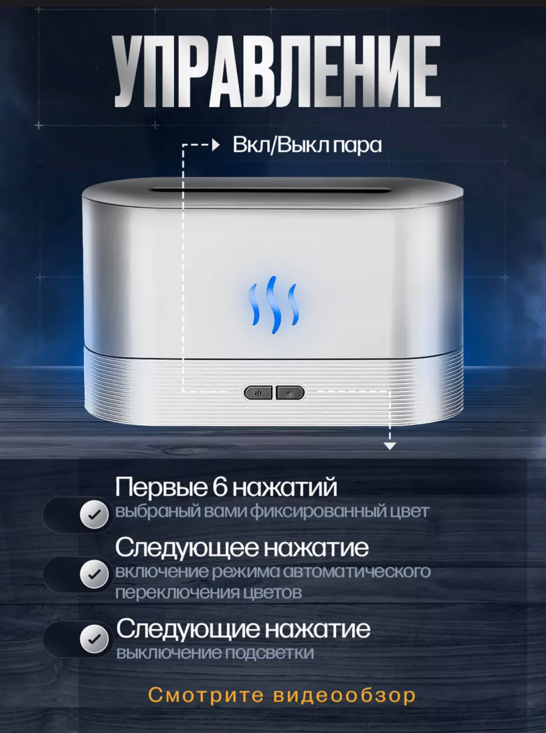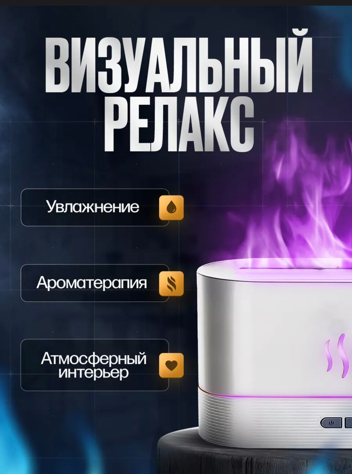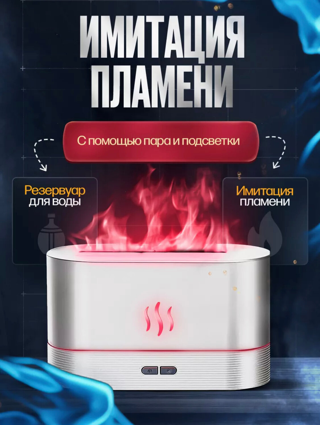 Увлажнитель воздуха и аромадиффузор с подсветкой для дома, ночник с эффектом пламяни