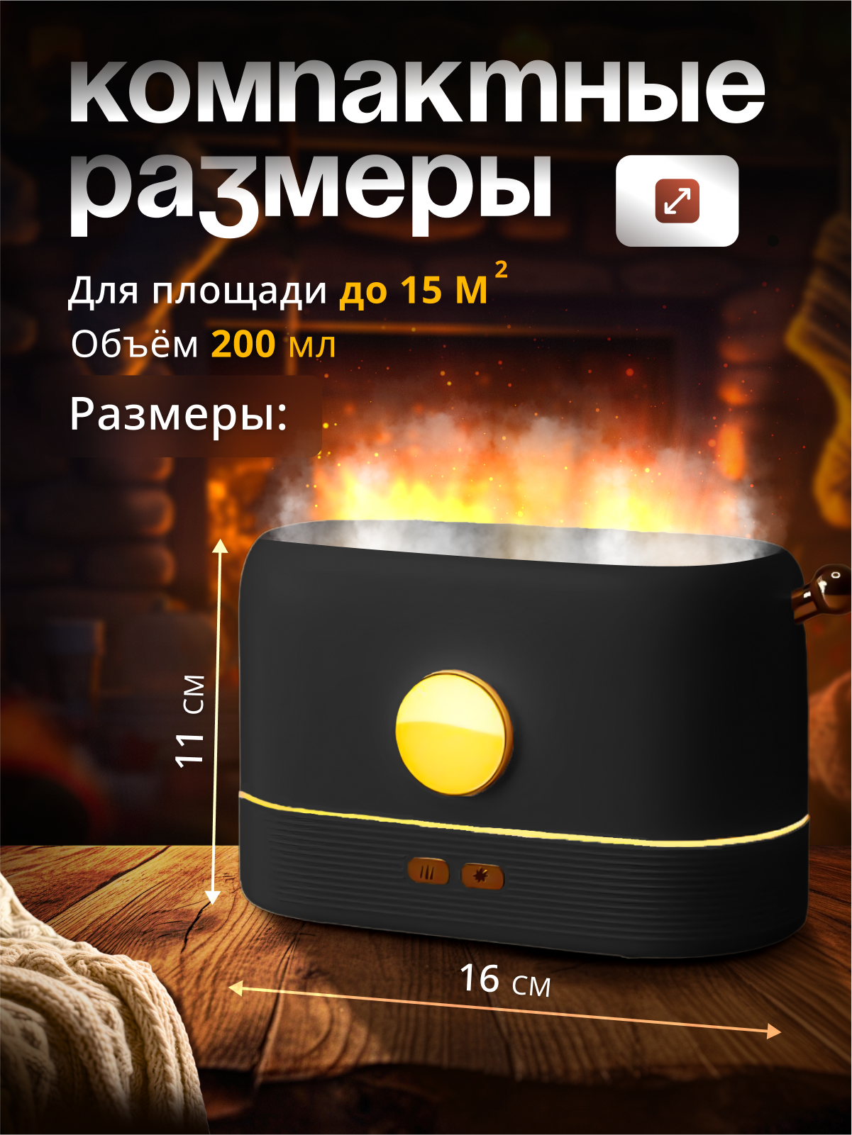 Увлажнитель воздуха камин с подсветкой/Аромадиффузор с имитацией пламени/Ночник/Черный