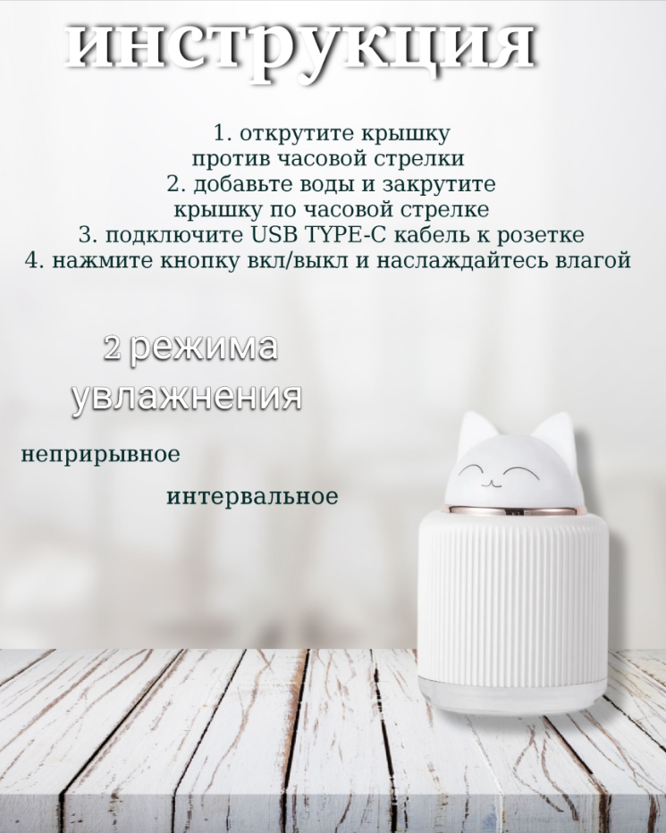 Увлажнитель (аромадиффузор) воздуха с функцией ночника 300ml белый информация: