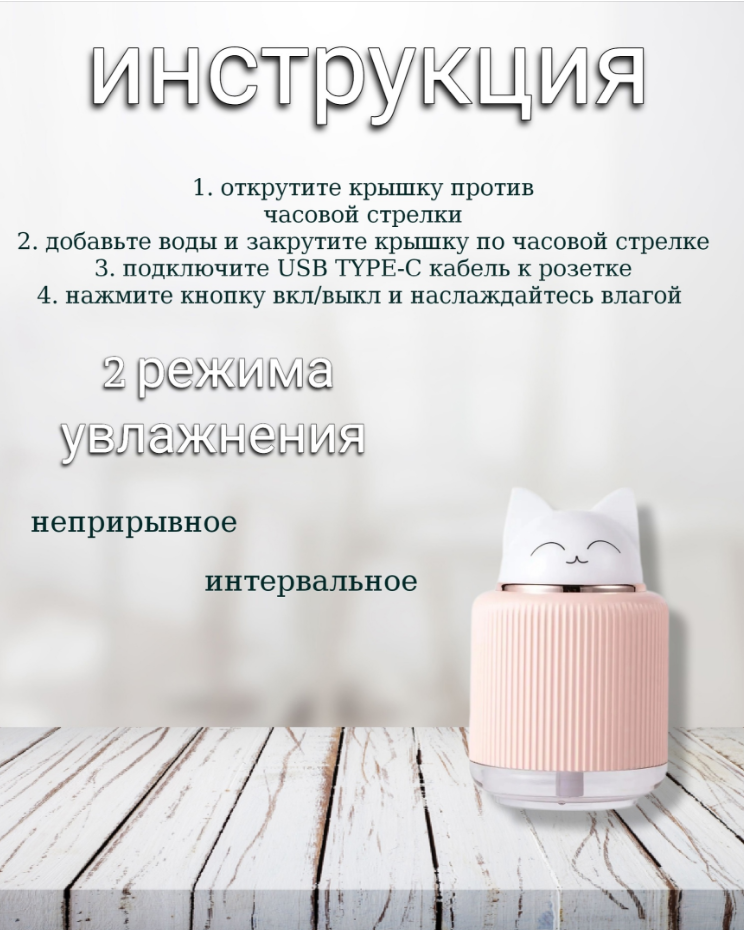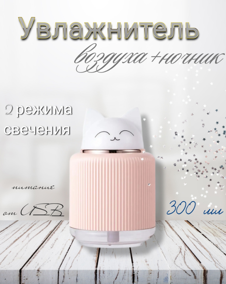 Увлажнитель (аромадиффузор) воздуха с функцией ночника 300ml розовый информация:
