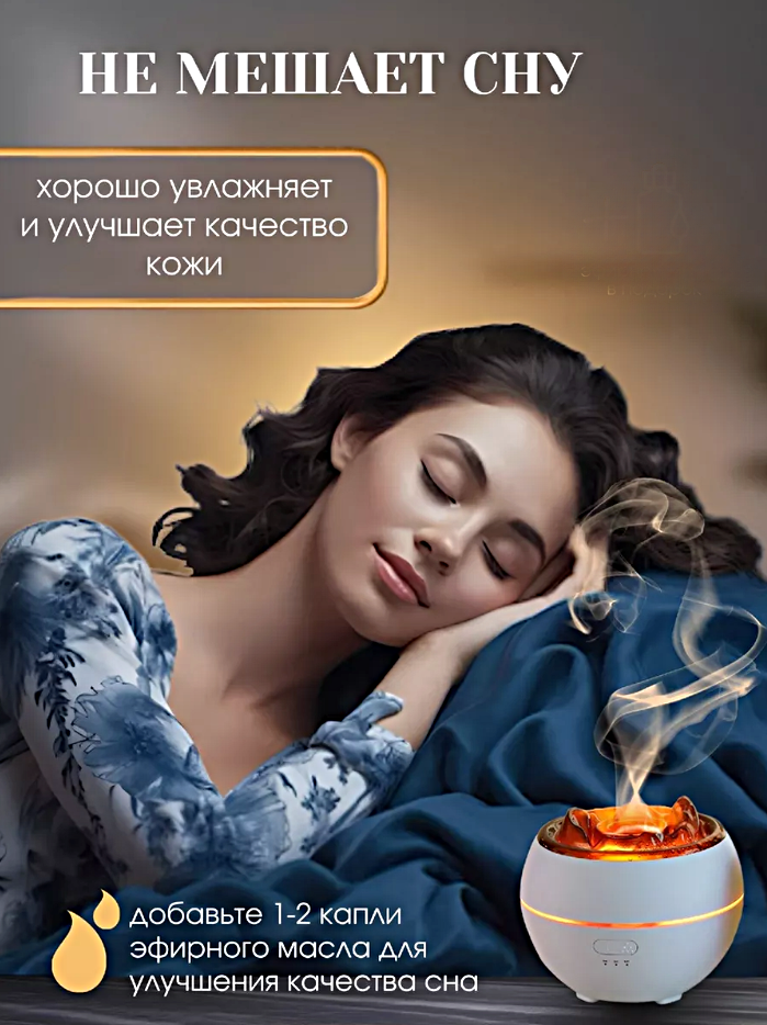 Отзывы на Увлажнитель воздуха с подсветкой Вулкан круглый, Ультразвуковой аромадиффузор ночник для дома, 360мл, Белый