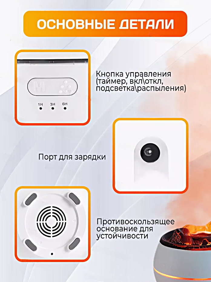 Увлажнитель воздуха и аромадиффузор с подсветкой для дома, ночник с эффектом пламяни