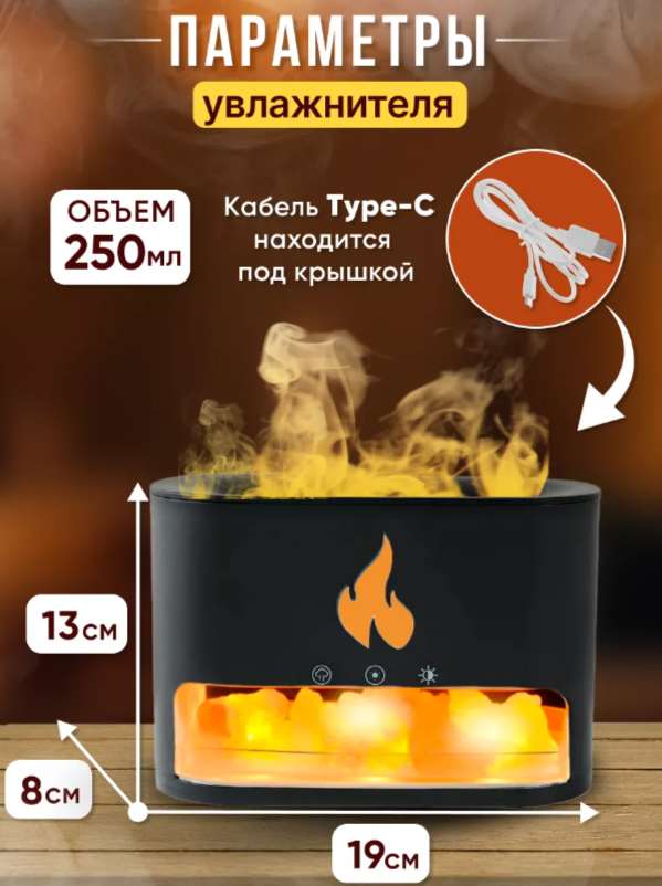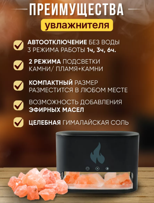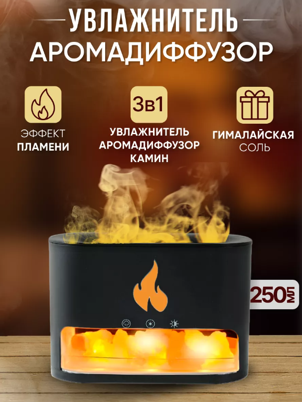 10 цен на Увлажнитель воздуха камин с подсветкой/Аромадиффузор с имитацией пламени/Увлажнитель с гималайской солью